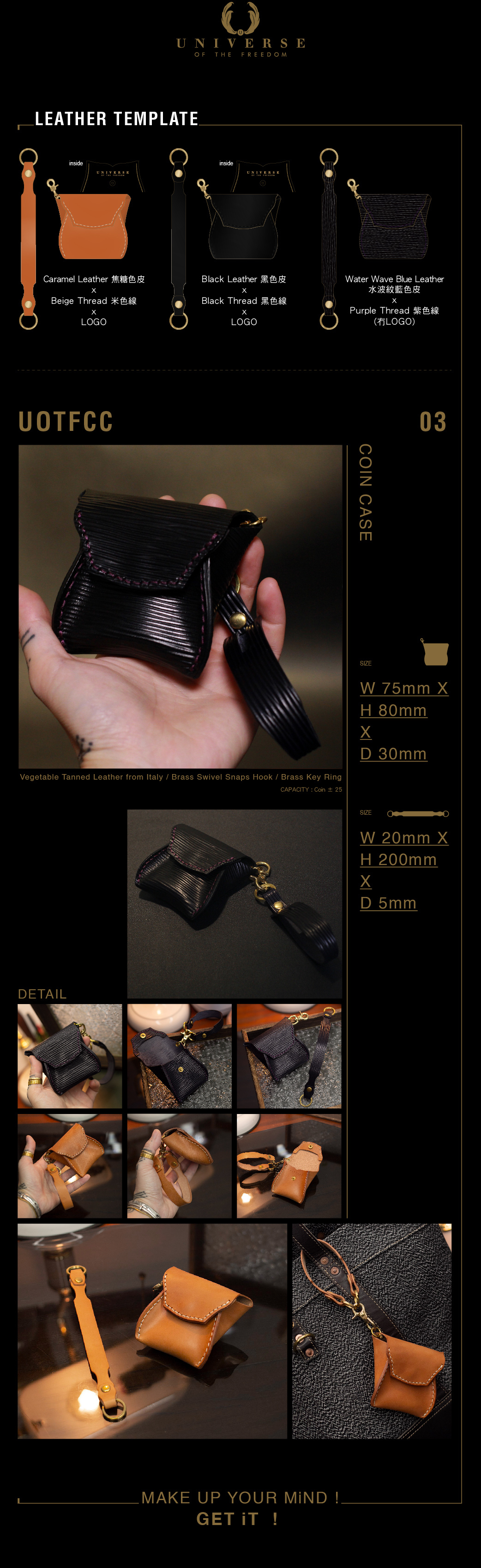 意大利植鞣革 / 黃銅旋轉按扣鉤 / 黃銅鑰匙圈